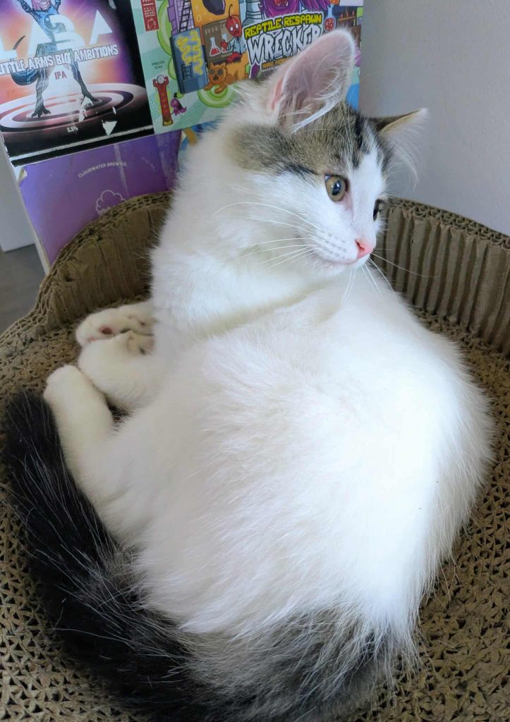 Flow a été trouvé tout bébé, sans sa maman, atteint d’un coryza avancé et non sevré. Il n’avait pas reçu les codes du comportement félin…c'était un petit wolverine